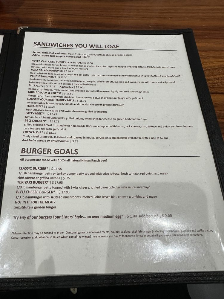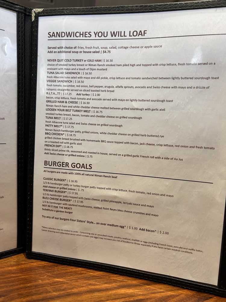 Four Sisters Cafe in Roseville, CA is a must-visit for a delightful breakfast and brunch experience. The cafe offers a variety of New American dishes, with options for vegans and vegetarians. The menu includes crowd-pleasers like the corned beef hash, California eggs Benedict, and French Dip with tomato soup. Customers rave about the generous portions and flavorful food, making it a popular spot for families and groups. The friendly service, airy atmosphere, and delicious dishes like the crème brûlée oatmeal and custom omelet make Four Sisters Cafe a top choice for a satisfying meal. With a warm and welcoming atmosphere, this cafe stands out for its exceptional customer service and consistently great dining experience. Whether you're looking for a hearty breakfast or a leisurely brunch, Four Sisters Cafe is the perfect destination. Don't miss out on the experience at this gem in the heart of Roseville.
